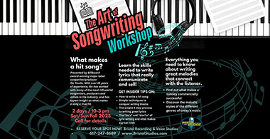 If you need help writing songs call us to find out about registering for the next Songwriting Workshop. 617-247-8689